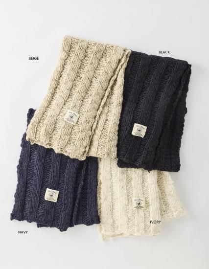 メリノウール100%を贅沢に使用したこのストール/マフラーは、寒い季節にあたたかさを求める方に最適です。ムラ糸を使用することで独特の風合いとボリューム感を演出し、軽やかな着心地を実現しています。