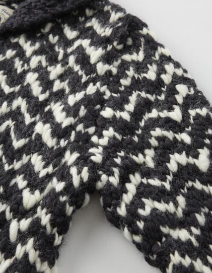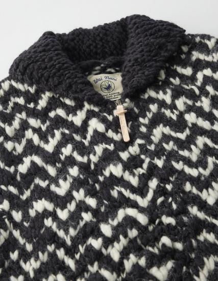 WAINANIメリノウールカウチンセーター、その名に違わず、軽さと暖かさを兼ね備えた一枚です。むら糸ウールを贅沢に使用し、手作りで仕上げられたこのセーターは、ヘリンボン柄が施されており、一枚で存在感のあるスタイリングを演出します。